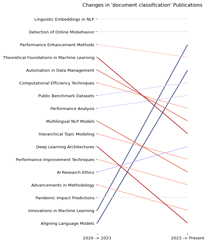 joinDF = buildPlot(prepareDF(joinDF.copy()), f"Changes in '{SEARCH_QUERY}' Publications") fig, ax1